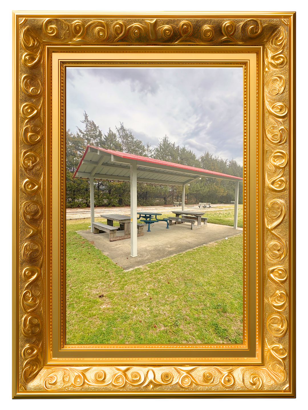We will be located in the shelter with the red rooftop in the far back right area. You can follow the trail around the park to find it.